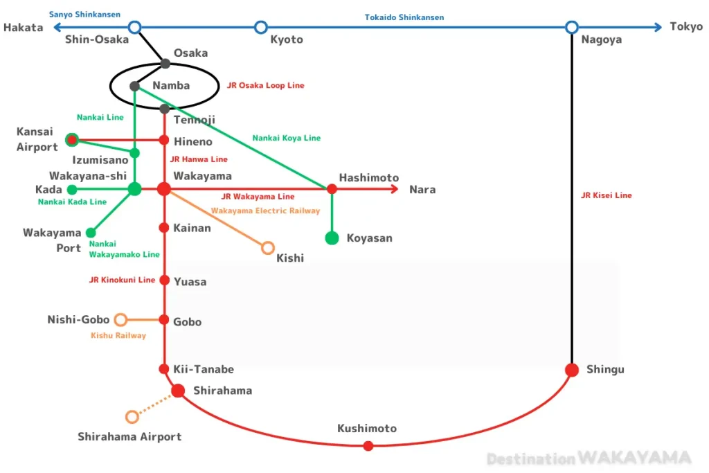 - Shin-Osaka → Wakayama:1h10m(特急くろしお)
