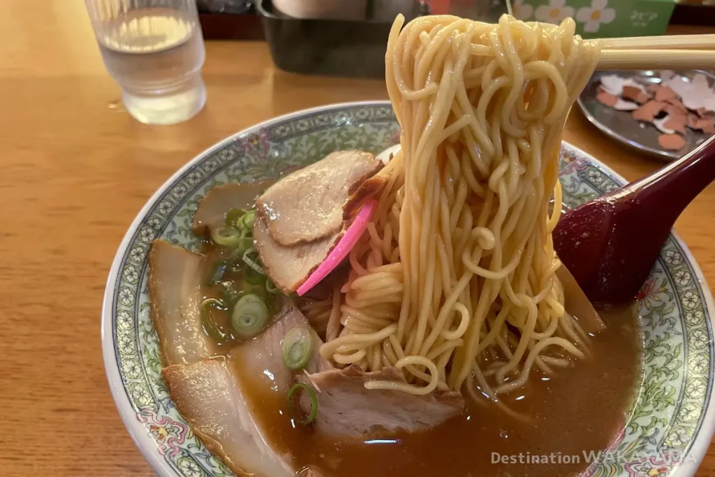 Marusan’s chuka soba is a simple combination of chashu, green onions, menma (bamboo shoots), and kamaboko (fish cake). This simplicity might be the secret to its enduring popularity.
