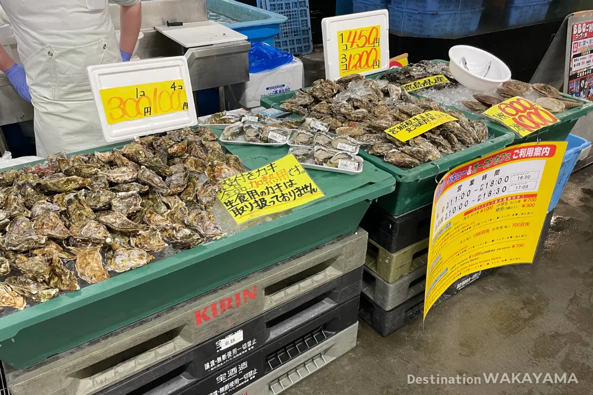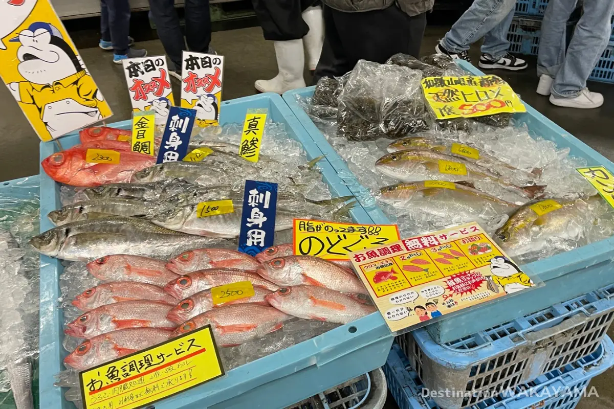 Toretore Market receives fresh seafood from all over Japan, including Wakayama Prefecture, its local area.