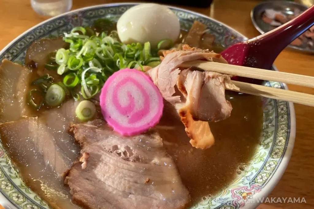 這次我點了「特製大盛」,包括加麵和加肉。一般來說,和歌山拉麵的分量較小,對成人男性來說,大份剛剛好。