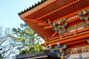 本殿以美麗嘅朱漆建築著稱,已經被列為國家重要文化財。佢嘅歷史建築風格同周邊自然景觀互相輝映,吸引唔少參拜者前嚟欣賞。