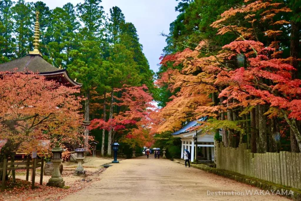 特別推薦秋天,金剛峯寺正門周圍以及被燈光點綴的蛇腹路(じゃばらみち)紅葉美景,令人讚嘆。